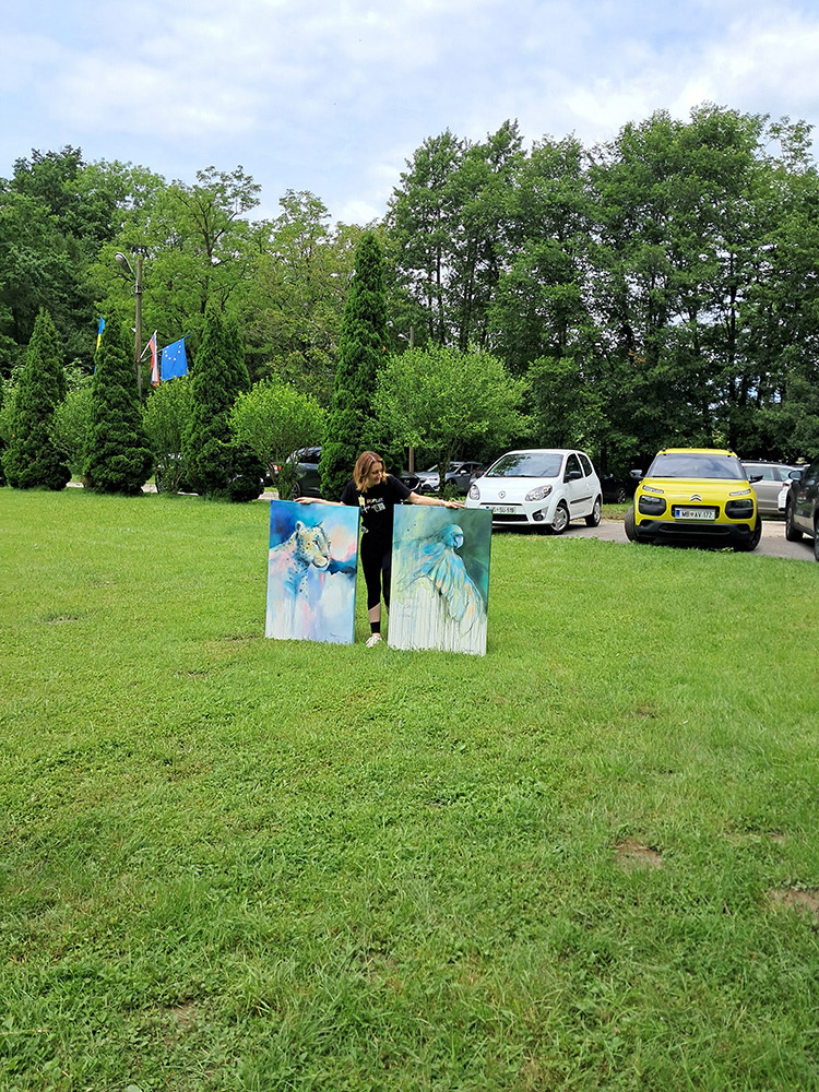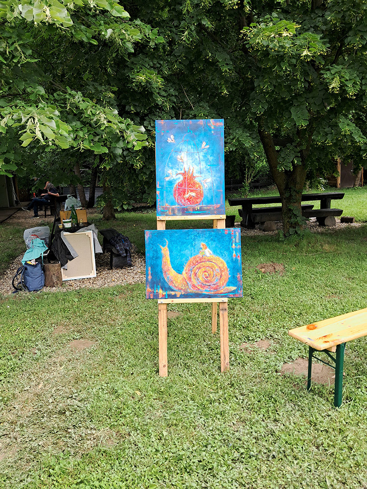 Duplek Art is an international art colony organized by Rajko Ferk and held in a small, beautiful place near Maribor. About 40 artists from different countries participated in the 15th colony. Despite the rain and wind, we enjoyed ourselves and created excellent masterpieces for the upcoming exhibitions in Slovenia.