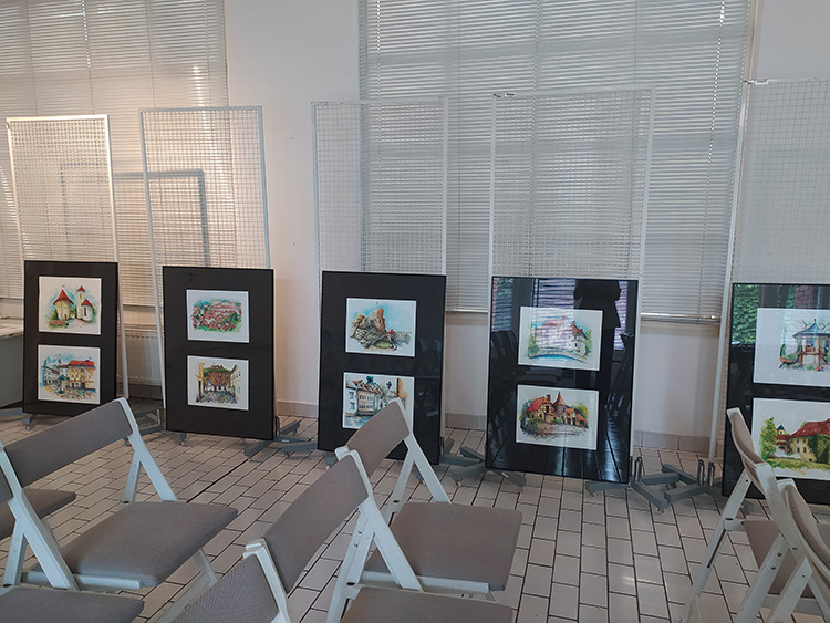 Summer Mosaic of Happiness is an collection of watercolor sketches created during trips around Slovenia. Snow-white churches, high castles and old houses, colorful pavements of narrow streets and bugs resting in the sun. When was the last time you observed how old chimneys look, how the color of the heavy doors of the old family house has faded or how the transparent wings of a dragonfly flutter? If you have forgotten this feeling of endless summer sunny happiness, take the time to see the exhibition and maybe these illustrations will bring you back to the world of childhood and carefreeness.