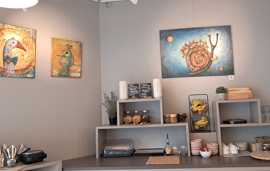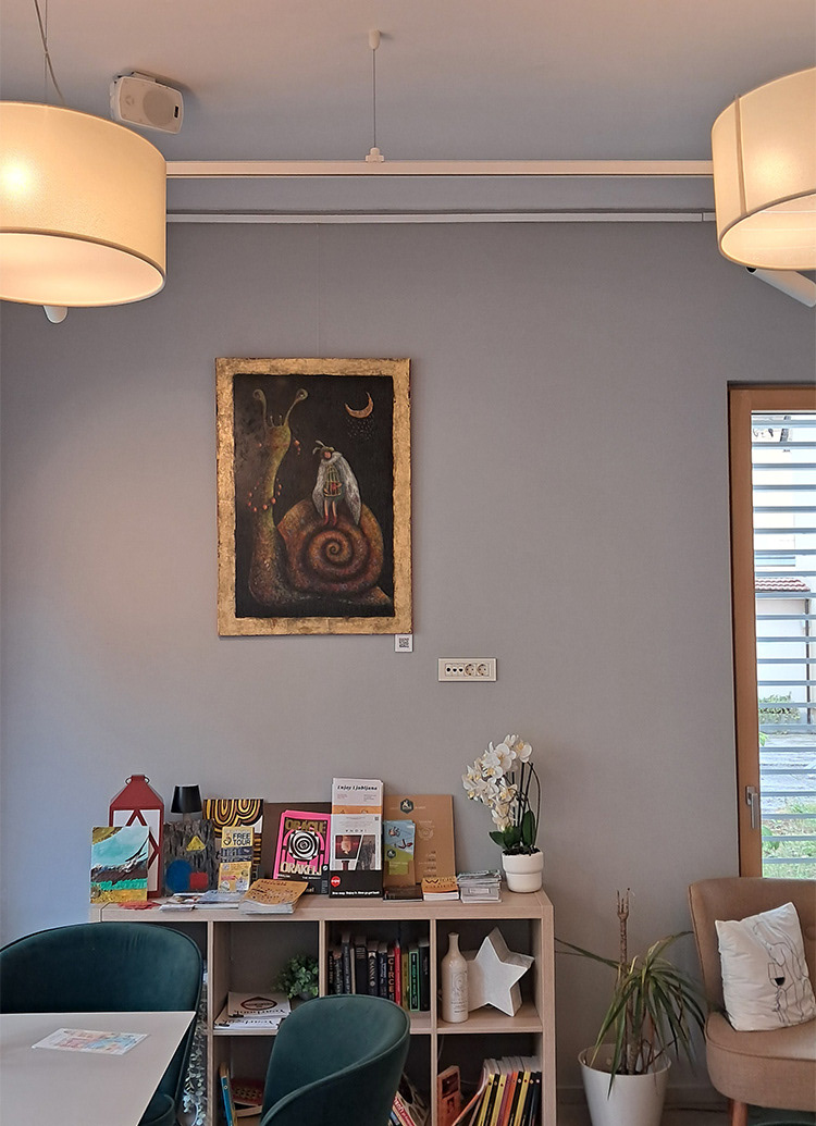Ker je bila razstava dolgotrajna, sem vmes zamenjala nekaj prodanih slik z novimi – tako da lahko rečem, da sem imela skoraj dve razstavi v eni (mala šala).