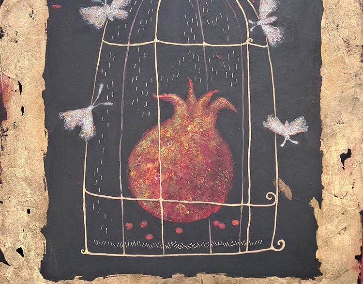 In the deep silence of the night, a golden crescent is caged, like a piece of sky caught and preserved. It is the moon in my dream, that rests in silent captivity. The darkness breathes around it, enveloping it in velvet shadows. There is no wind, no singing wings, only the silence of longing. The gold shimmers softly, whispering of distant horizons, of untouched skies, of the moment when the silence will finally open and a dream will soar.